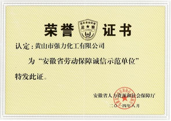 为表彰先进,树立典型,在全社会营造用人单位自我规范、自我约束、诚实守信的良好氛围,不断强化用人单位劳动保障管理。星空(中国体育)官方网站在签订履行劳动合同、缴纳社会保险费、规范用工行为等方面取得显著成绩,被授予“安徽省劳动保障诚信示范单位”称号。