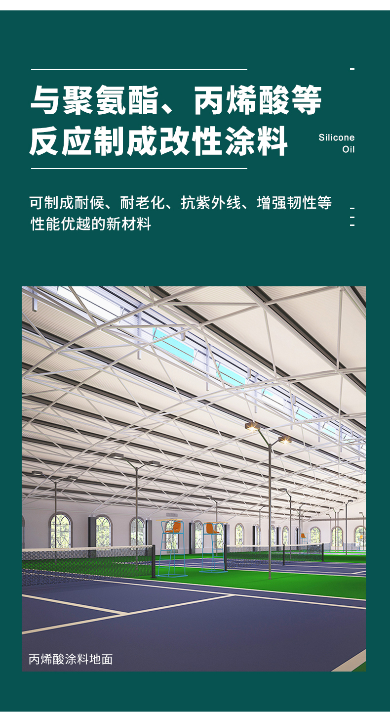 端乙烯基硅油与聚氨酯、丙烯酸等多种有机材料反应,可制成性能更优越(耐候、耐老化、抗紫外线、增强韧性等)的新材料;