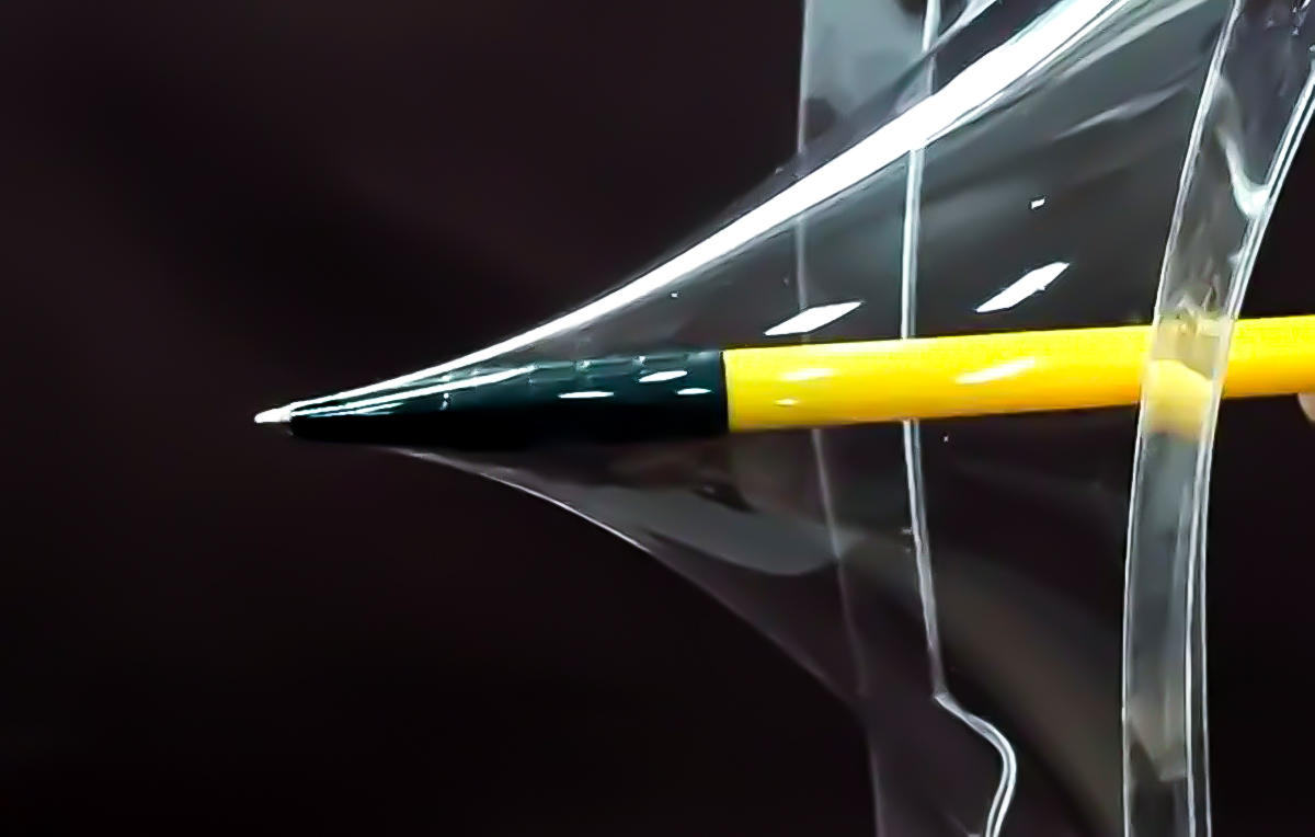 3)薄膜具备弹性,在拉伸一定长度后(只要不拉断),薄膜均会恢复原来形状,不会有明显形变变化;