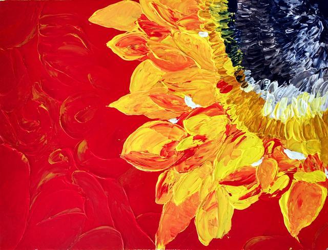 4、它还具有油画和丙烯画所没有的多样性,画厚质画它可以不断的堆积,呈现出浮雕般的效果而不会塌陷;