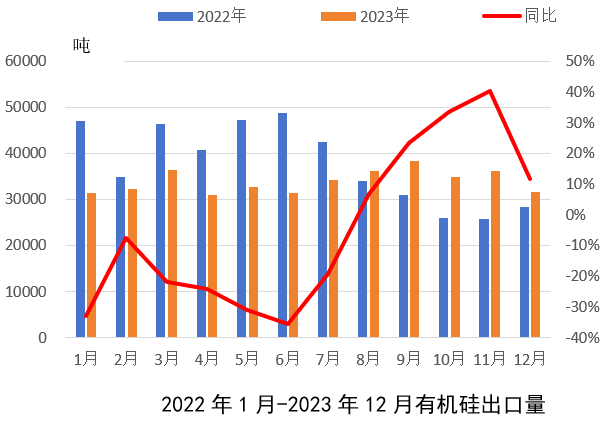 中国是全球最大的聚硅氧烷出口国,直接出口占总量的20%左右,另外中国有机硅下游很多产品也是大量出口的,加上间接出口,整个出口市场对有机硅行业有非常大的影响。2023年我国有机硅的进出口情况具体是怎么样的呢?