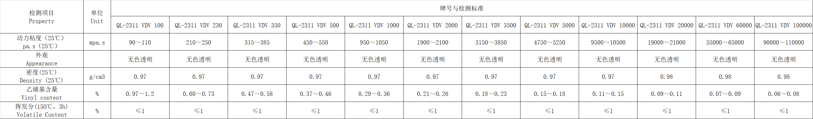 国产高品质无钾钠离子乙烯基硅油QL-2311 VDV100-20000cst