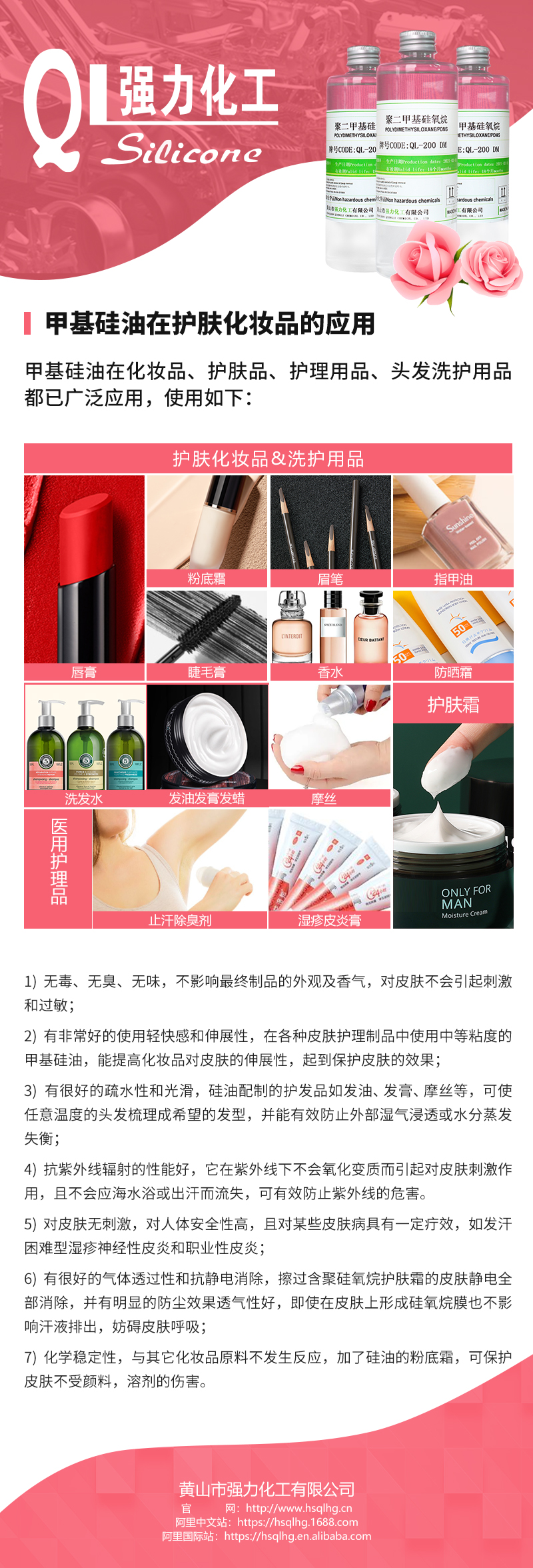聚二甲基硅氧烷的渗透性聚二甲基硅氧烷对皮肤的渗透性非常好,护肤品涂抹在皮肤上的顺滑清爽感受,通常都是因为添加该原料的缘故,原料本身对于增加皮肤的柔软性也有不错的效果。在护发洗发产品中,可以加深头发的颜色,帮助头发保持自然光泽,基本上,能够使头发顺滑的洗发水中,都能够找到该原料。